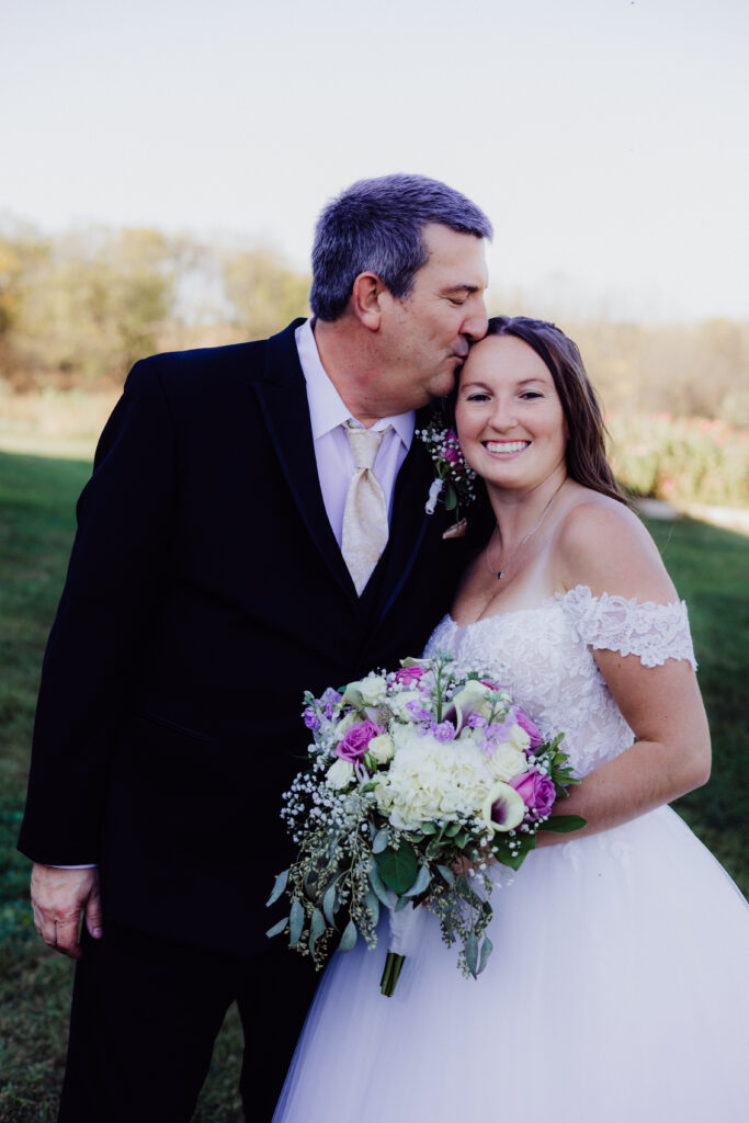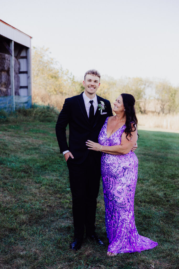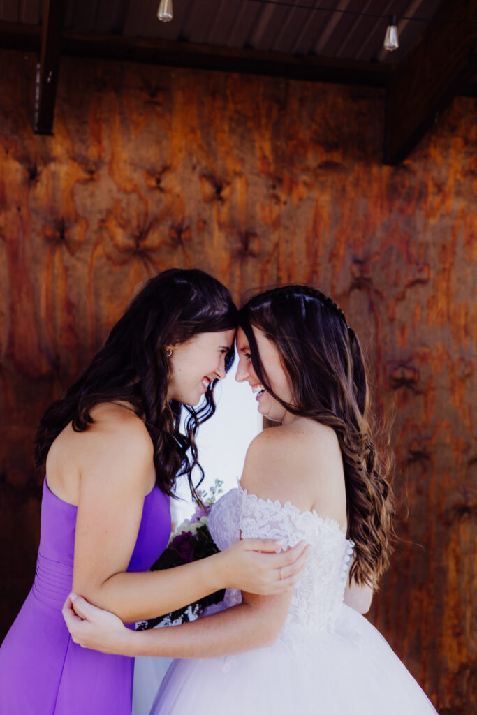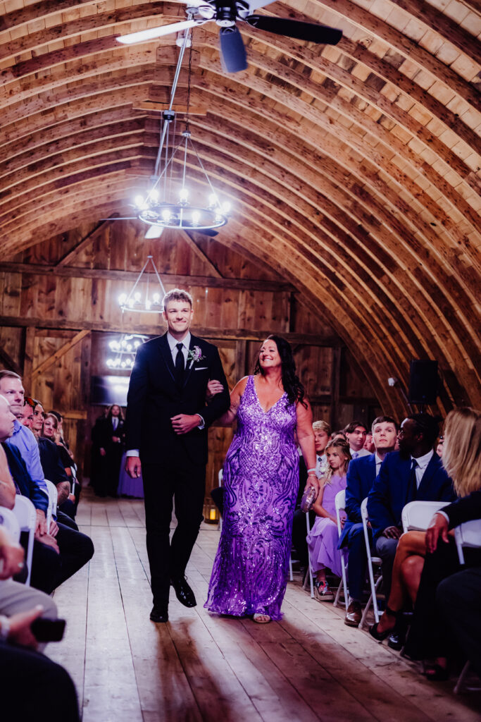 Mimi’s family gathered close, their laughter echoing off the barn walls. One of my favorite moments? Her father kissing her forehead — a simple, tender gesture that spoke volumes. A few steps away, Roger shared a sweet hug with his mom, who wore the most stunning lavender-sequined gown that shimmered beautifully in the sun.